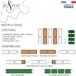 A csomag mindent tartalmaz, amire szükség van: karton tubusok a stabil maghoz, 180 × 120 cm-es filc alátét, műanyag kupakok és rögzítőpántok. Nagy méretének köszönhetően az alátét bőséges helyet kínál a kényelmes elemválogatáshoz forma és szín szerint, ami felgyorsítja és kellemesebbé teszi a kirakást.
