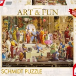Fedezze fel a reneszánsz varázsát a Schmidt Art&Fun: Athéni Iskola kirakóval. Ez az 1000 darabos puzzle egy gyönyörű reprodukciót nyújt Raffaelo egyik leghíresebb művéből.