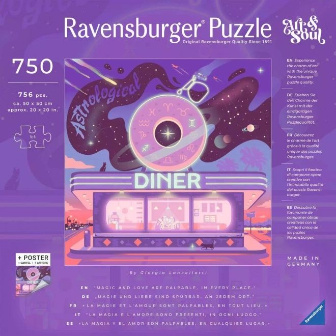 Merüljön el az illusztrációk világában, és állítsa össze saját műalkotását. A Ravensburger Art & Soul: Asztrológiai étkező négyzet alakú puzzle részletgazdag motívummal, minőségi nyomattal és precíz kivágással érkezik, így a darabok gördülékenyen illeszkednek egymáshoz. Ideális a pihentető percekhez, illetve összerakás után design dekorációként.