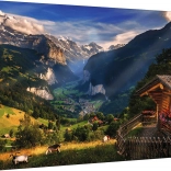 Élvezze a csodás kilátást az alpesi csúcsokra, a faházra és Lauterbrunnen zöld völgyére – Svájc ikonikus tájára – a TREFL Premium Plus kollekció részletgazdag kirakóján. A minőségi kartonnak és a precíz kivitelezésnek köszönhetően az elemek simán illeszkednek és egyben maradnak még az összeállított részek áthelyezésekor is.