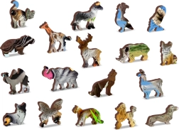 Fedezze fel a darabok kreatív formáit, amelyek állatokat és afrikai épületeket ábrázolnak. Minden darab önálló figuraként is funkcionálhat.