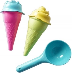 Változtasd a homokozót fagyizóvá! Ez a bájos készlet tartalmaz egy tölcsért, egy gombócot és egy szervírozó kanalat, melyekkel a gyerekek könnyedén készítenek homokgombócokat és egész „kelyheket”. Egyszerű használat a nagyobb önállóságért és a képzelet kibontakoztatásáért.