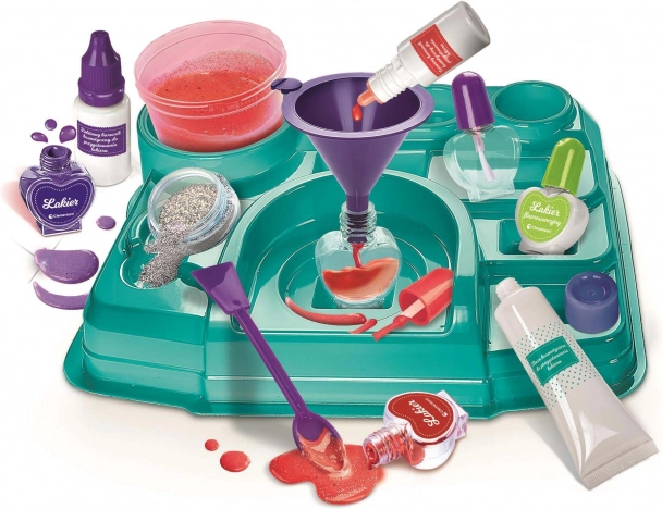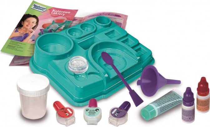 - A szórakoztató tábla lehetővé teszi a készletben található alapok és pigmentek egyszerű keverését, hogy színes körömlakkokat hozz létre.