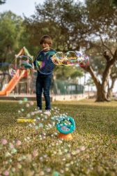 A FRU BLU automata buborékgép bármelyik kerti délutánt, születésnapi bulit vagy gyerekszobát varázslatos előadássá változtat. Csak öntsd be az oldatot, kapcsold be, és a forgó karikák erőfeszítés nélkül százával ontják a buborékokat. A kompakt, műanyag ház könnyű és stabil, így beltéri és kültéri használatra egyaránt alkalmas.