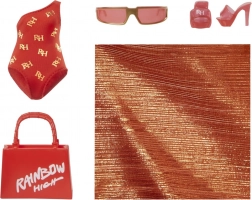 Tartalmaz egy piros felsőt és arany szoknyát, kiegészítőkként piros táskát és napszemüveget.