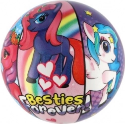A labda színes póni képekkel van díszítve, amely vonzza a figyelmet és örömöt hoz minden játék során.