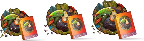 Ez a dizájnos fa kirakó színes tukán motívummal órákig tartó szórakozást és gyönyörű lakásdekorációt kínál. Az 500 egyedi elem mindegyike pontosan van kivágva 5 mm vastag, FSC tanúsítvánnyal rendelkező fából, így kényelmesen rakható és stabilan tartja a formáját. A modern UV nyomtatásnak köszönhetően a színek és részletek élettel teliek, a kész kép pedig remekül díszíti a falat.