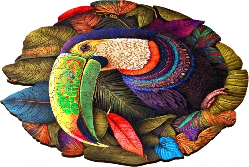 A részletgazdag UV nyomat kiemeli az egzotikus tukánt és a dzsungel leveleit. A kész kirakó figyelemfelkeltő fali dekorációvá válik.