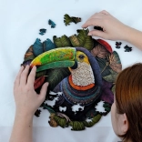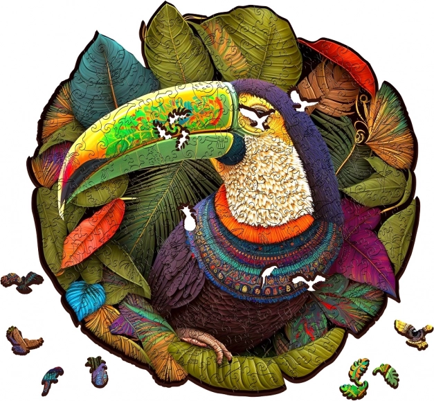 Mindegyik darab precízen lézerrel van kivágva a tökéletes pontosság és simaság érdekében. A puzzle egy gyönyörű Tukan képet ábrázol, amelyet modern UV digitális nyomtatási technológiával nyomtattak, amely valósághű és élénk színeket hoz létre.