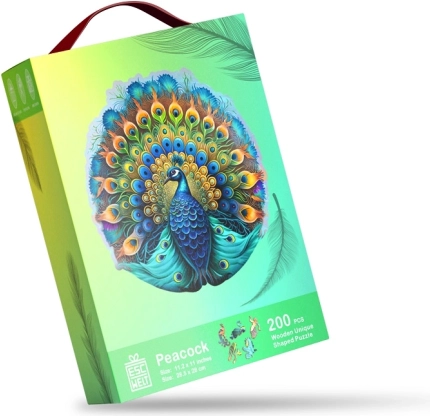 Élvezze a fa puzzle egyedülálló élményét pávamintával! Mind a 200 darab precízen lézerrel van kivágva, ami biztosítja a tökéletes pontosságot és simaságot. A modern UV digitális nyomtatási technológiának köszönhetően a puzzle élénk és valósághű színeket hoz minden darabba.