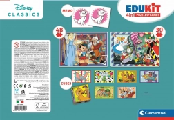 Clementoni játékkészlet Disney klasszikusok 4 az 1-ben egy csodálatos gyűjtemény szórakoztató játékokkal gyerekeknek, mely tartalmaz kirakókat és további aktivitásokat Disney karakterek motívumaival. Tökéletes ajándék minden Disney világ rajongónak.