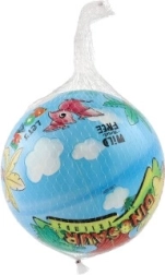 A színes dinoszaurusz illusztrációk vonzó játékká teszik a labdát, amely mozgásra és közös játékra ösztönzi a gyerekeket.