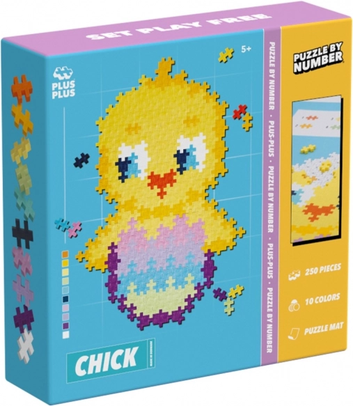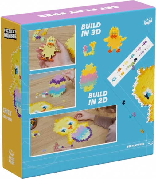 A PLUS-PLUS Rakd ki számok szerint – Csibe kreatív készlet 250 darabot tartalmaz. Elkészíthető egy aranyos, tojásból kibújó csibe, továbbá egy háromdimenziós csibe és egy kétdimenziós tojás. A képeket dekorációként is felhasználhatja.