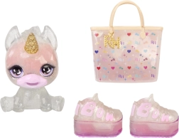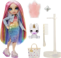 A csomag tartalmaz egy aranyos unikornis társat és zselés slime-ot, amelyet nyújthatsz, gyúrhatsz, és kiegészítők díszítésére használhatsz – az átlátszó táskára vagy a platformcipőkre. A hajnak az első kibontás után elég egy gyengéd öblítés, hogy puha és fényes legyen. A kollekciót olyan kedvelt karakterek egészítik ki, mint Violet, Skyler, Jade, Sunny és Ruby – gyűjtsd össze őket, és alkosd meg a saját szivárványvilágodat.