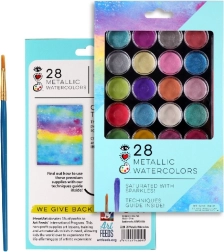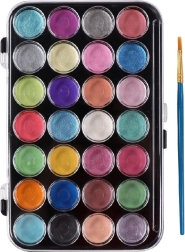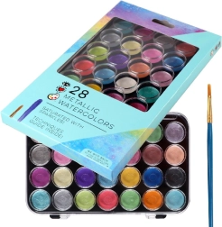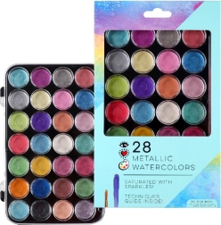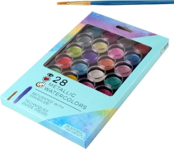 Fedezd fel a színek végtelen játékát, és alkoss egyedi, eredeti képeket! Ez a praktikus, kompakt készlet 28 akvarellfestéket tartalmaz gyönyörű, metál árnyalatokban, amelyekkel bárki kifejezheti kreativitását. A készlet műanyag tokban van, amely megvédi a festékeket a kiszáradástól, és megkönnyíti a mindennapi használatot. A csomag tartalmaz egy ecsetet és egy rövid útmutatót az akvarelltechnikákhoz. Ennek segítségével bárki megtanulhatja a színek kombinálását és új árnyalatok létrehozását. Ideális ajándék gyerekeknek, barátoknak, mindenkinek, aki szeret festeni.