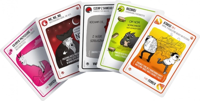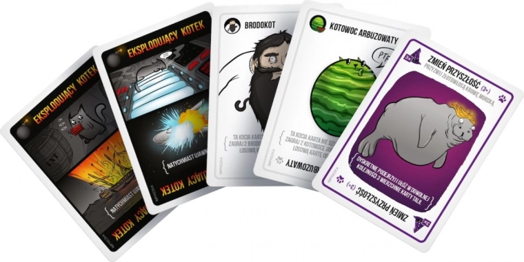 Az Exploding Cats a macskás, teljesen biztonságos változata az orosz rulettnek. A játék során a játékosok minden körben húznak egy lapot, amíg valaki fel nem húz egy robbanó cicát – ekkor a szerencsétlen felrobban és kiesik, a játéknak számára vége. Szerencsére a pakliban vannak olyan kártyák is, amelyekkel elodázhatjuk az elkerülhetetlent, vagy hatástalaníthatjuk a nyávogó bombát lézerpointerrel, pocaksimogatással vagy macskacsemegés szendviccsel. A győzelemhez okosan kell gazdálkodnunk a kezelt lapokkal.