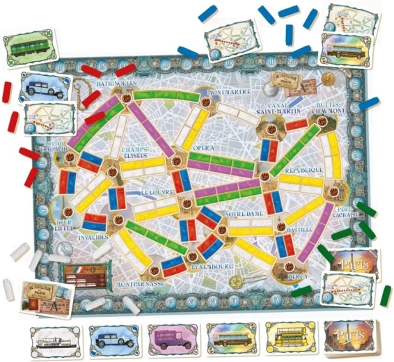A játék elején minden résztvevő 2 jegykártyát kap, amelyeken meg vannak jelölve azok a helyek, amelyeket a térképen megszakítás nélküli útvonallal kell összekötnünk. Ehhez két dologra van szükség: műanyag buszfigurákra és megfelelő számú, megfelelő színű közlekedési kártyára. Az egyes útvonalakat szakaszonként egészítjük ki, ami azt jelenti, hogy a saját körödben két szomszédos helyet köthetsz össze. További cél a francia zászló színeiben lévő kártyakészletek gyűjtése.