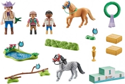 A készlet remekül illeszkedik a gyerekek kezéhez, és rengeteg kiegészítőt kínál a kreatív játékhoz: három kerítés, platform, lovas sisakok és további tartozékok. A gyerekfigurák a pónikon nyereg nélkül is lovagolhatnak, ami növeli a hitelességet és a szórakozást.