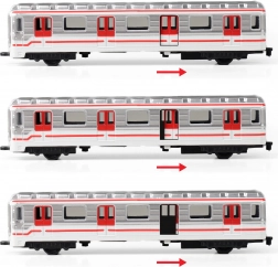 Az egyes kocsik könnyen egymás mögé kapcsolhatók. Egy ajtó a kocsi alján található karral nyitható a még élethűbb játékért.