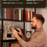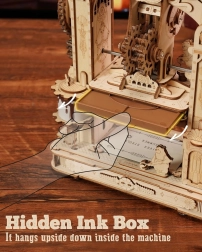 Keltsd életre a klasszikus nyomdagépet egyedülálló steampunk stílusban. A kar lenyomására megpördülnek a fogaskerekek, a figurális „nyomdász macik” működésbe hozzák a gépet, és a feladat befejezésekor felgyullad a fény. Az oldalsó középkori óra asztrolábium-mal bájt és hitelességet kölcsönöz a modellnek. Ideális kreatív DIY projektként, látványos dekorációként és okos oktatási eszközként a műszaki gondolkodás fejlesztéséhez.