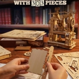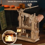 Építsd meg saját miniatűr történelmi nyomdádat, és fedezd fel a mechanika varázsát. Ez a precíz fa 3D puzzle mechanikus fogaskerekekkel, fényhatással és mozgó nyomtatással szórakoztat és dekoratív értéket is nyújt. A önfestő mechanizmusnak, a személyre szabható nyomólapnak és több mint 100 tipográfiai elemnek köszönhetően saját motívumokat nyomtathatsz scrapbookhoz, névjegykártyákhoz és képeslapokhoz. Ragasztó nélkül, lézerrel elővágott hársfából készült rétegelt lemezekkel.