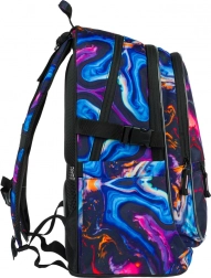 A markáns márványmintás, modern iskolai hátizsák kényelmes és tartós használatra készült. Az ergonomikusan formázott háttámla, a párnázás és a teljesen állítható váll-, mell- és oldalsó kompressziós pántok tökéletes illeszkedést és egészséges, egész napos viselést biztosítanak.