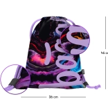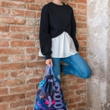 A lila, kék és rózsaszín árnyalataiban játszó, látványos absztrakt minta feldobja az öltözéket, és garantálja, hogy a zsákot nem lehet nem észrevenni.