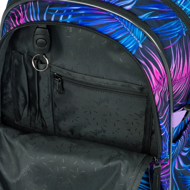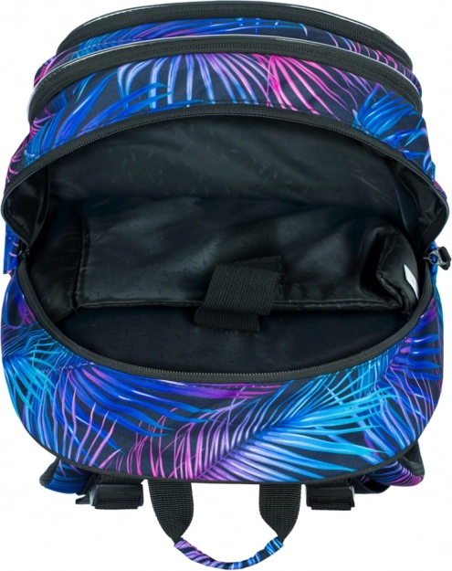 A stílusos és praktikus BAAGL Core Palm iskolai hátizsák mindennapos kényelmet kínál. Ergonomikusan formázott hátpanellel, három rekesszel, rendezővel és 15''-os laptopzsebbel rendelkezik. 25 l űrtartalmának és mindössze 900 g tömegének köszönhetően kényelmes viselet, miközben vízálló, újrahasznosított anyagból készül, és megbízható YKK cipzárakkal, valamint fényvisszaverő elemekkel van felszerelve.