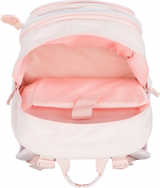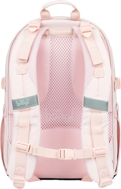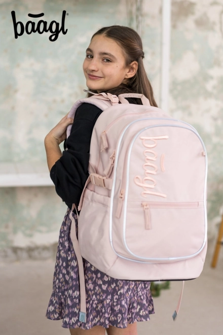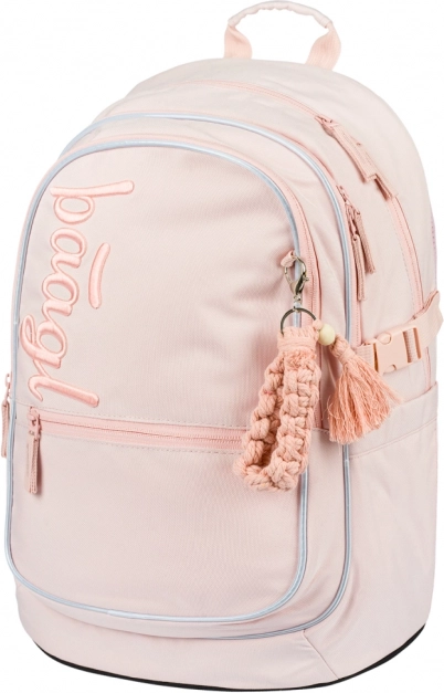 A BAAGL Core Creamy stílusos és funkcionális iskolatáska mindössze 900 g súllyal és 25 l űrtartalommal. A három külön-külön zárható rekesz rendszerezővel és a párnázott zseb biztonságosan elfér benne a 15"-os laptop vagy tablet, füzetek és iskolai felszerelések. Az erős anyagból készült oldalsó zsebek ideálisak kulacs számára.