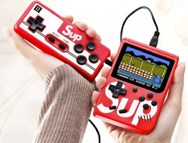 A fényes 3" színes LCD-n élvezheti kedvenc címeket, mint MARIO, CONTRA, PAC‑MAN, DONKEY KONG és még sok más. A mellékelt vezérlőnek köszönhetően ketten is játszhatnak – az első játékos a konzolon, a második a gamepaden. A töltés kényelmesen microUSB-n keresztül történik, így nincs szükség elemcserére.