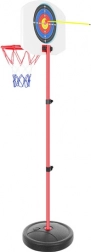 Ez a 2 az 1-ben gyerek szett órákon át tartó örömet és mozgást kínál: gyakoroljátok a kosárra dobást és a célzást íjjal. A könnyű és stabil szerkezet megkönnyíti a hordozást, a kosár magassága pedig gyorsan állítható, így együtt nő a gyermekkel. Remek választás otthonra, kertbe vagy gyerekszobába.