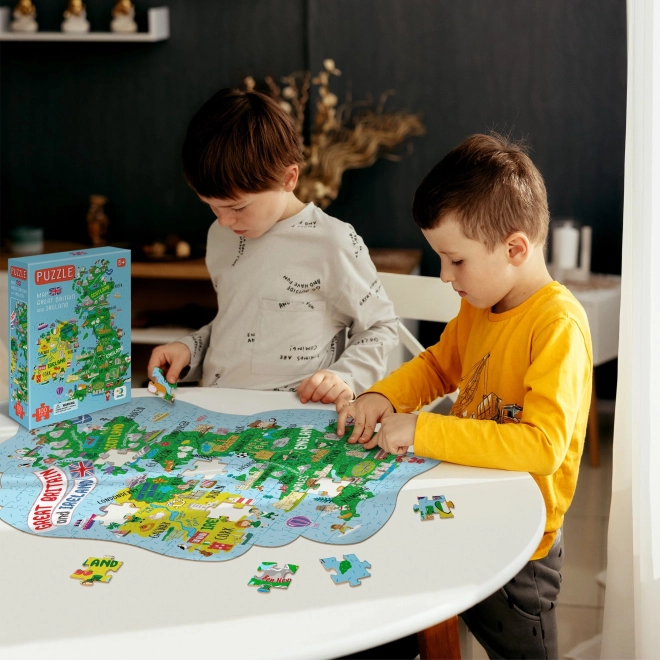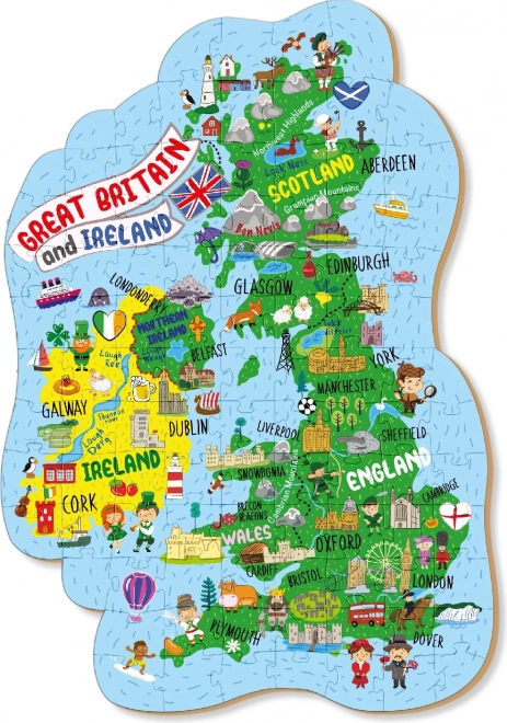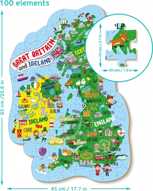 Fedezze fel a szigetek varázsát ezzel az oktató kirakóval, amely játékos formában mutatja be Nagy-Britannia és Észak-Írország földrajzát. Ideális gyerekeknek és felnőtteknek, angol nyelvű feliratokkal a nyelvgyakorláshoz és a tudás bővítéséhez. Összerakva a kirakó mérete körülbelül 65 × 45 cm, és 100 darabot tartalmaz a kellemes családi szórakozáshoz.