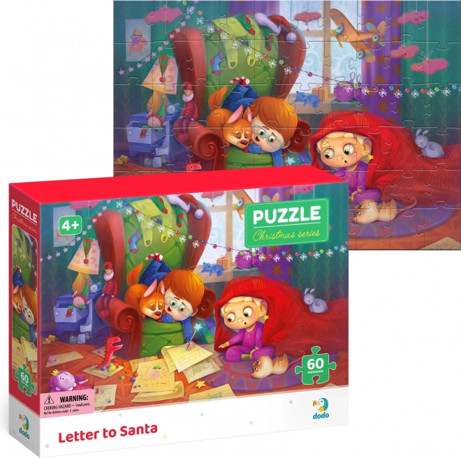 Varázslatos gyerek puzzle karácsonyi kívánságlevél-motívummal, amely örömet szerez a kis kirakózóknak. 60 darabból áll, és kirakva kb. 32 × 23 cm méretű – ideális rövid játékhoz, valamint a finommotorika és a türelem fejlesztéséhez.