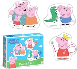Szórakoztató kontúros kirakók PEPPA MALAC motívummal, 3 az 1-ben készletben, három képpel 2, 3 és 4 darabbal. Ideális az első kirakásokhoz – fejleszti a finommotorikát, a logikus gondolkodást és a kéz–szem koordinációt.