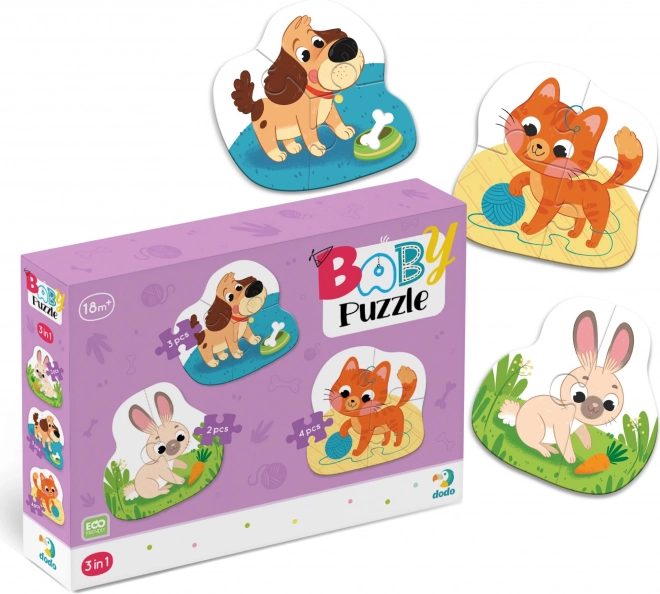 Fedezze fel a legkisebbek első kirakóit: a DODO baby puzzle házi kedvencek 3az1-ben készlet három körvonalas képet kínál különböző nehézségi szintekkel (2, 3 és 4 darab). Tökéletes a finommotorika, a logikus gondolkodás és a kéz–szem koordináció fejlesztésére, miközben örömet szerez a kedvelt házi kedvences motívumokkal.