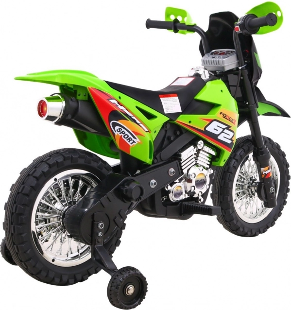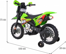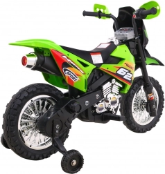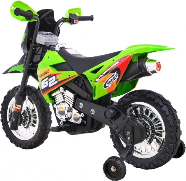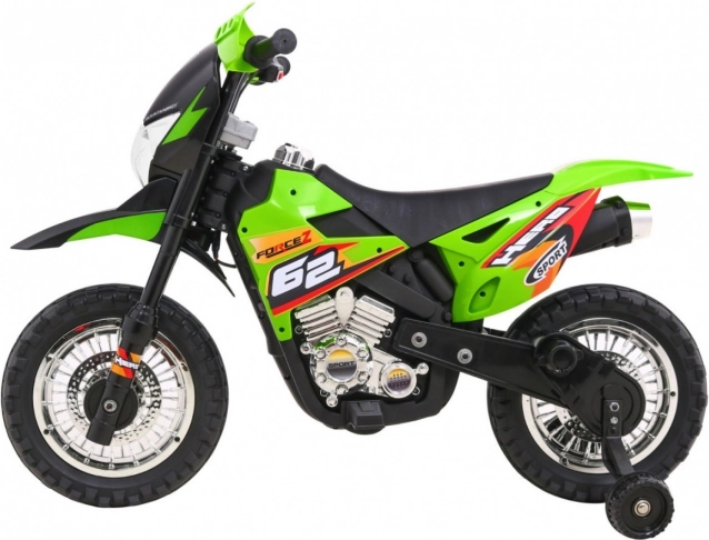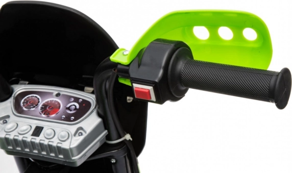A krossz stílusú gyermek elektromos motorkerékpár ideális az első kétkerekű élményekhez. A markolatba épített gáz és az előremeneti üzemmód könnyű kezelhetőséget és magabiztosságot ad, míg a levehető segédkerekek minden felületen stabilan tartanak. Az első LED lámpák és a hangokat, dallamokat kínáló panel extra szórakozást és élethűséget nyújt.