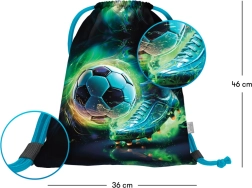 Vonzó minta focilabdával és stopliscipővel, amely a kisebb és nagyobb sportolókat egyaránt megszólítja – edzésre és iskolába is remek választás.