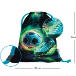 Praktikus BAAGL sportzsák focis mintával, ideális váltócipőhöz, lábbelikhez vagy szabadidős apróságokhoz. Erős, mosható anyaggal, masszív zsinóros zárással és karabinerrel a táskához való rögzítéshez.