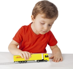 A DHL nyergesvontató pótkocsival ideális minden gyermek számára, aki szeretne kézbesítő szolgálatot játszani. Ez a 1:87 méretarányú modell fém és PVC kombinációjából készült, ami hosszú élettartamot és tartósságot biztosít játék közben. A szabadonfutásnak köszönhetően a gyerekek órákig élvezhetik a szórakozást, elemek nélkül is. A modellen feltűnő DHL logó található, ami élethű másolatává teszi a valódi kézbesítő járműveknek.