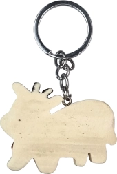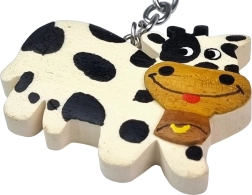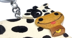 A kulcstartó kézzel készül akár ötféle, természetes színezetű fából. A fát nem festik, csupán finoman kézzel kiegészítő festést kap a tehénmotívum életteli megjelenéséért.