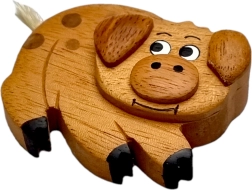 Ez a minőségi fa malac mágnes nagy figyelemmel a részletekre és tisztességes kézműves munkával készül. A különböző színű egzótafák kombinációja kiemeli az anyag természetes erezetét – felületi festés nélkül, csak kézi részletfestéssel a játékos arculat érdekében.