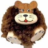A fa test és a plüss részletek kellemes, természetes anyagokból álló kombinációt alkotnak, amely tartós és egyben dekoratív.