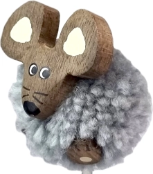 - Játékos motívum: textilből és fából készült egér dekorációként