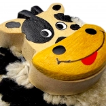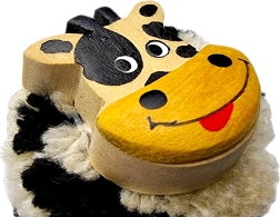 - Vidám design – pelyhes pompon és mosolygós tehénpofi a jókedvért.