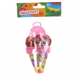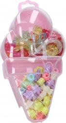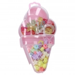 Fedezze fel a szórakoztató fagyi alakú gyöngykészletet, amely különböző méretű és színű gyöngyöket tartalmaz, valamint zsinórt a könnyű fűzéshez.