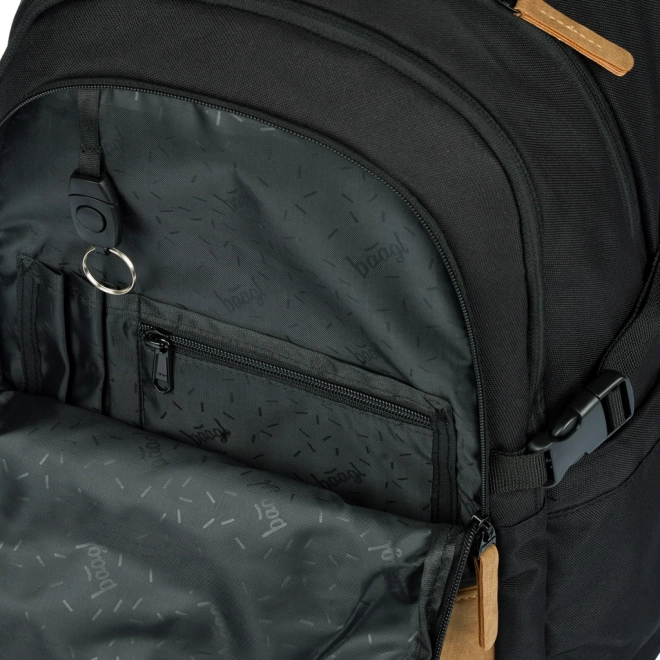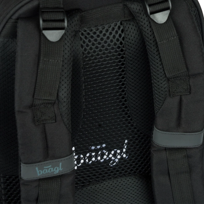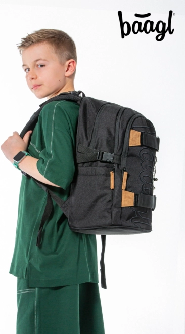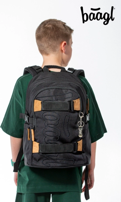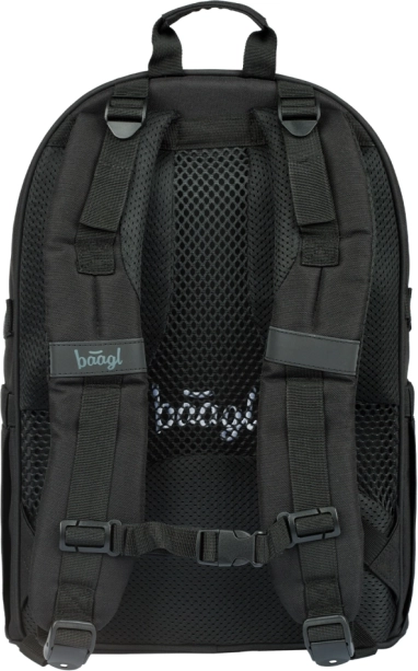 A BAAGL Skate Darkness átgondolt iskolai hátizsák mindennapos viseléshez iskolába, szakkörökre és városi kiruccanásokra. A három különálló rekesz belső rendezővel és a párnázott zseb biztonságosan elhelyezi a tankönyveket, füzeteket és a 15"-os laptopot vagy táblagépet. Az oldalsó merev zsebek ideálisak kulacsra, az elülső pántok pedig könnyedén megtartják a gördeszkát.