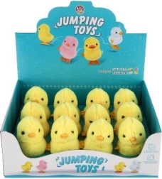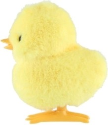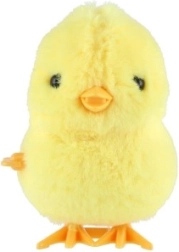 Csak fel kell húzni a kulcsot, és a csibe ugrálni kezd – ideális a gyermekek szórakoztatására.