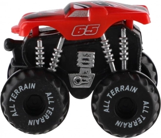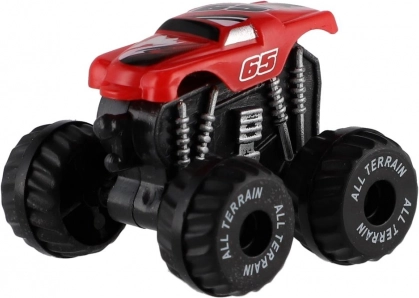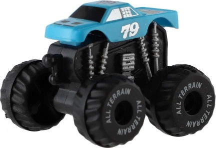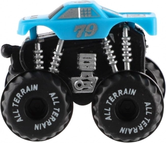 A mini monster truck feltűnő „ALL TERRAIN” abroncsokkal zsebmértetben hozza az akciót. A kilövő mechanizmus kulccsal extra lendületet ad – a gyerekek egyszerűen beillesztik a kulcsot a hátsó részbe, majd a gomb megnyomásával azonnal rajtolhatnak. A 4 cm-es kompakt méret és a tartós műanyag kialakítás a mindennapos játékra termett.