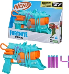 Fedezd fel a szórakozást a Nerf Fortnite Primal blasterrel, amelyet a FORTNITE játék inspirált. 4 nyíl kapacitásával és egyszerű kezelhetőségével gyors akciót, türkiz–narancs színű menő dizájnt és biztonságos játékot kínál 8 éves kortól.