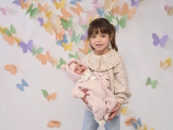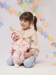 A végtagok ízülettel rögzítettek, így a baba ülni is tud. Könnyen felöltöztethető az eredeti LLORENS 43–45 cm-es ruháiba.
